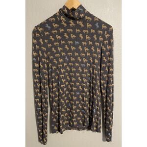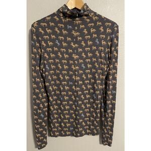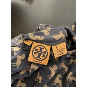 Tory Burch Womens Quarter Zip Top Small Horse Novelty Print Stretch Equestrian