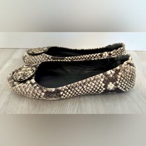 Tory Burch Women's RARE Minnie Snakeskin-Embossed Leather Ballet Flats Size 7.5
