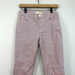 Tory Burch Womens Regan Cropped Straight Leg Jeans Geometric Cream Size 27 Women