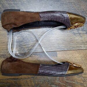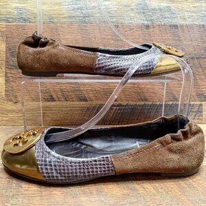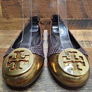 Tory Burch Women’s Reva Gold Metallic Slip On Stretch Ballet Flats Size 6.5