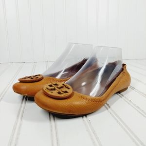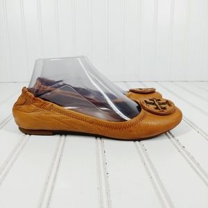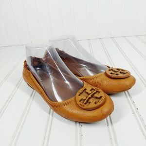 Tory Burch soft leather ballerinas with the iconic double T logo.