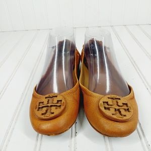 Tory Burch Women's Reva Leather Round Toe Logo Slip On Ballet Flats C696