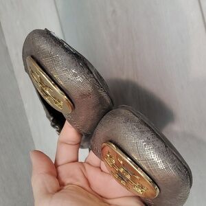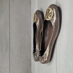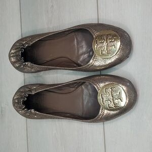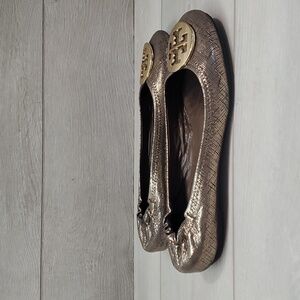 Tory Burch Womens Reva Logos Gold Metallic Loafer Flats Ballet shoes sz 8