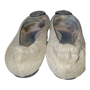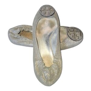 Tory Burch Women's Reva Mettalic Shimmer Silver Leather Ballet Flats Sz 6 1/2 M