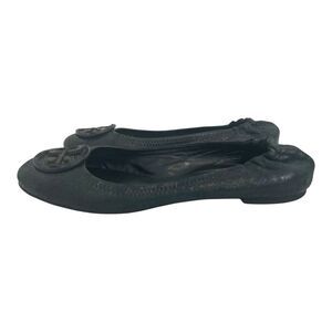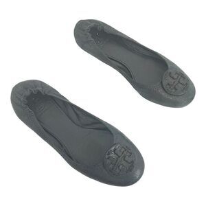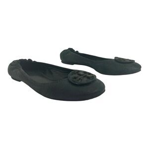 Tory Burch Womens Reva Size 8 Black Logo Slip On Travel Ballet Shoes Flats
