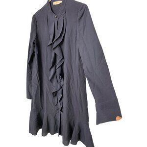 Tory Burch Womens Ruffle Front Shirt Dress Size 6 Navy Polyester RX10455 Shift