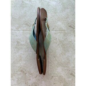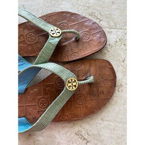 Tory Burch Women's Size 11M Leather Sandals Green Straps & Blue Lining