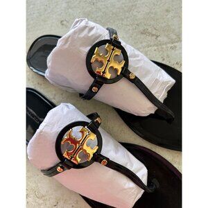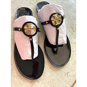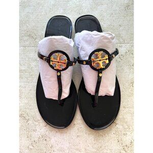 Tory Burch Women's Size 12 Miller Black Patent Sandals Gold Logo