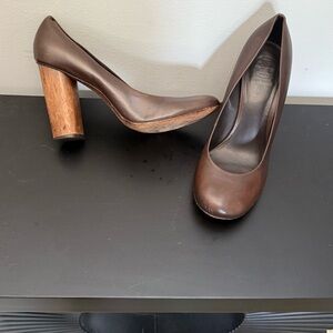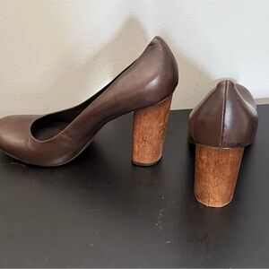 Tory Burch Womens Size 9.5 Brown Leather Pump Chunky Heels
