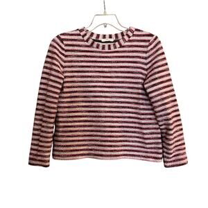 Tory Burch Women's Size Medium Cream & Pink Striped Nubby Terry Knit Sweatshirt