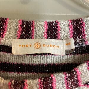 Tory Burch Women's Size Medium Cream & Pink Striped Nubby Terry Knit Sweater