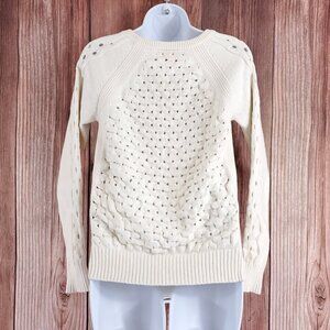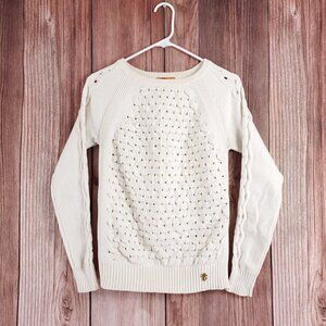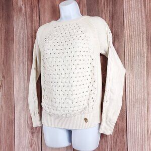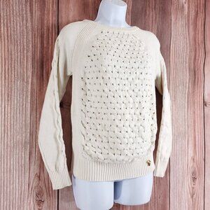 Tory Burch Womens Size Small White Knit Sweater Cotton Polyester Logo