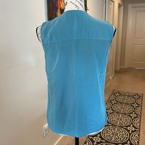 Tory Burch Womens Sleeveless Ruffle Trim Blouse Top Blue Size 4 Round Ne…