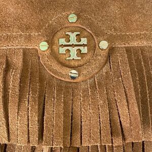 Tory Burch Women's Suede Shearling Lined Collins Fringe Winter Boots Havana Tan Size 7