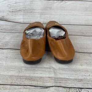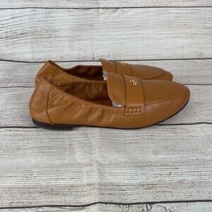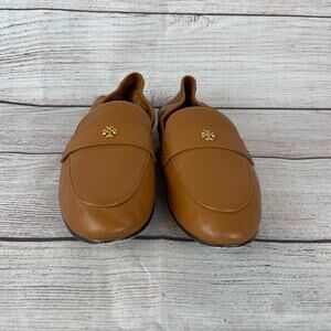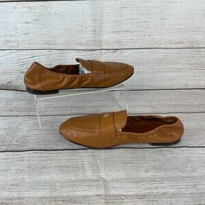 Tory Burch Womens Sz 7.5M Ballet Loafers Bourbon Brown Leather Gold Logo