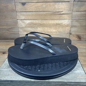 Tory Burch Womens Sz 10 Platform Flip Flop Perfect Black Leather Strap Sandals