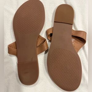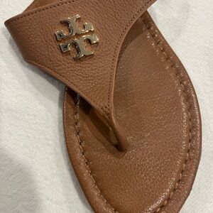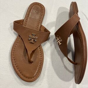 Tory Burch Women's Tan Leather Thong Sandals with Gold Logo size 8