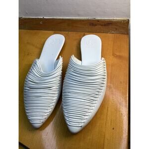 Tory Burch Women's White Sienna Pointy Toe Flat Slide Mule