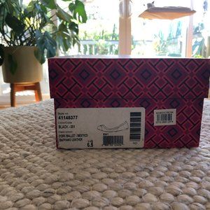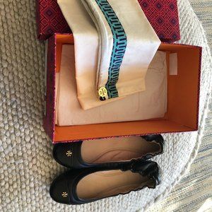 Tory Burch Women’s York Ballet Mestico Saffiano Black Leather Flat, Size 6.5