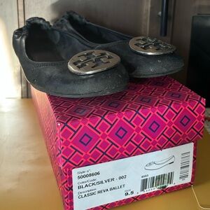 Tory Burch Women’s Black ballet flats with silver hardware. Come with box and two dust bags