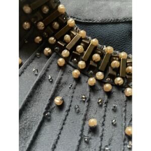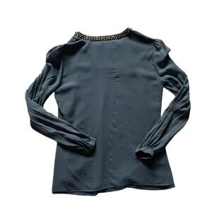 Tory Burch Womens/Teen Silk Sheer Blouse Beaded/Pearl Collar Slate color Size 0