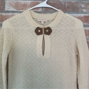 Women’s size XS Tory Burch tunic knit “Mim” sweater. Cream color with brown leather accent. Wool alpaca blend, great condition!