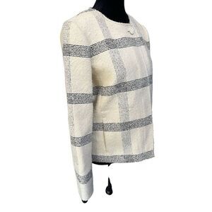 Tory Burch Wool Blend Ivory Black Plaid Blazer Zip Button Closure Women’s 10 M