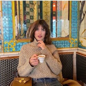 Tory Burch Wool Camel Chunky Turtleneck Sweater