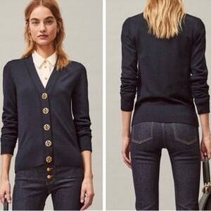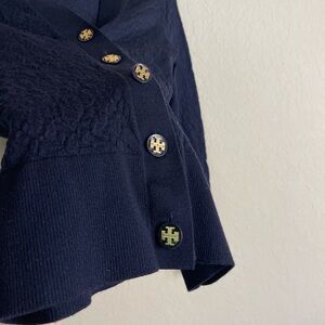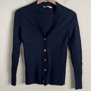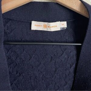 Tory Burch Wool Crinkle Simone Cardigan Navy Blue Size Small