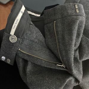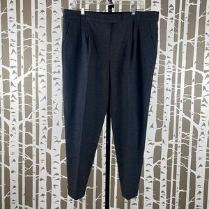 Tory Burch Wool Flannel Pleated Cropped Tapered Dress Pants Charcoal Gray XL