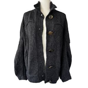 Tory Burch Wool Jillian Chunky Sweater Cardigan Charcoal Gray Size S/P Small