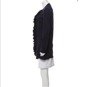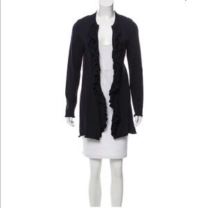 Tory Burch Wool Knit Long Ruffled Front Cardigan.