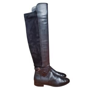Tory Burch Wyatt Over The Knee Riding Boots Leather Black Logo 40791 Size 7