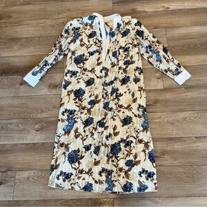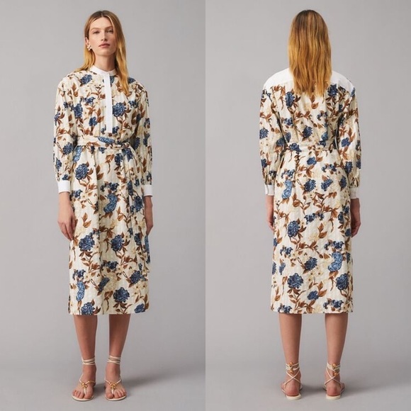 Tory Burch XS Floral Print Tunic Midi Shirtdress Long Sleeves Belted Cotton