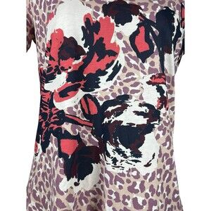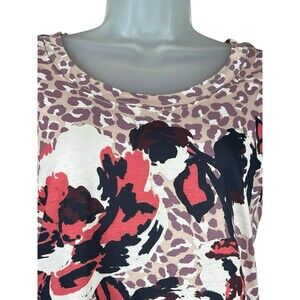 Tory Burch XS Leopard Floral Tee Shirt Artsy Preppy Academia Top Cotton Designer