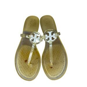Tory Burch Yellow Clear Jelly Miller Sandals Size 8 Logo Thong Flip Flops