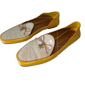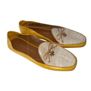 Tory Burch Yellow & Cream Two Tone Bow Charm Loafer Flats Sz 9 Preppy