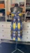 Strapless silk dress with a striking yellow and blue pattern. Ideal for any occasion.
