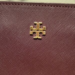 Tory Burch York Buckle Tote Large Two Toned Purple and Red Leather Gold Hardware