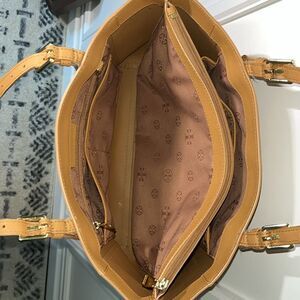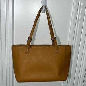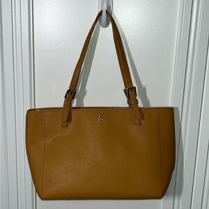 With its roomy size, the Tory Burch Buckle Tote can hold your everyday essentials, small vanity kit, notebook, and even your 10” tablet. It has an open top for easy and effortless access.