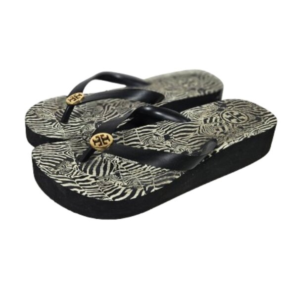 Tory Burch zebra print black and cream platform flip flops Size is missing - estimated size 7-7.5 Excellent used condition Thank for visiting my closet!