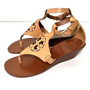 Tory Burch Zoey Wedge in Sand Tan Leather Size 6.5