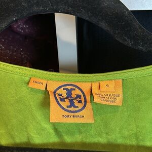 Tory Burch apple green sleeveless scoop neck 100% silk blouse size 6