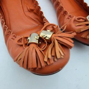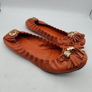 Tory Burch ballet flats Reese Orange Leather Tassels Logo Slip On Women Size 7