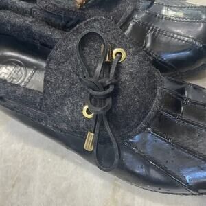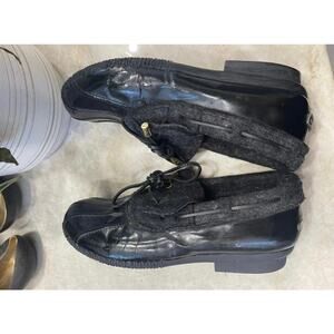 Tory Burch black patent leather duck rain shoes sz 11/41