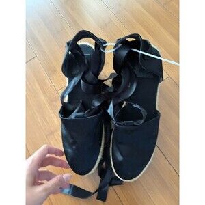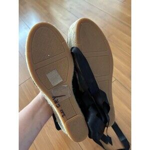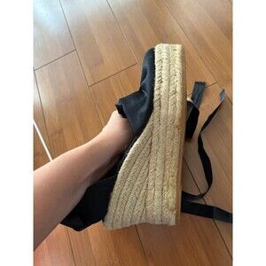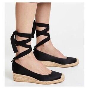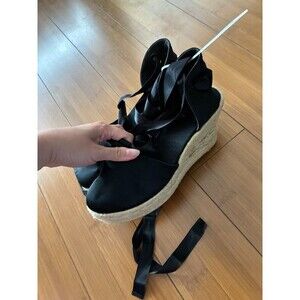 Tory Burch black satin lace up espadrille wedges - Women's 8.5 - Like New