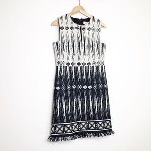 Tory Burch, black/ivory tweed Savora fringed dress fully lined and zips up at the back.