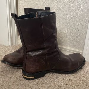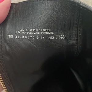 Tory Burch brown leather boots with leather soles. I purchased these at Nordstrom 7 years ago for $350. I’ve worn them less than 10 times (turns out buying a leather soled shoe for fall and winter wear is a bad idea).