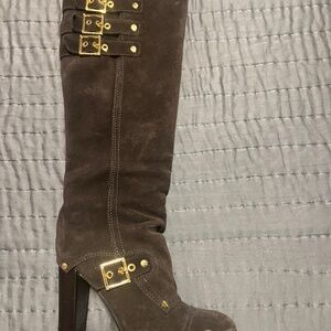 Beautiful like new Tory Burch suede moto knee high boots. Size 6. Nearly perfect. Couple small marks on the suede on one boot in the inner toe area. See photos. Worn only twice. Not available for retail purchase in stores anymore. Original price $475.