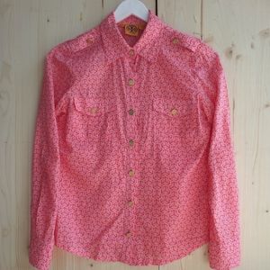 Beautiful Tory Burch button down shirt , gold metal TB logo buttons and shoulder lapels